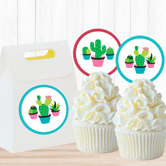 Little Cactus Cupcake Toppers – 2" Party Circles Printable PDF