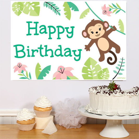Little Monkey Party Welcome Poster – 18x24 Editable Printable Birthday Sign