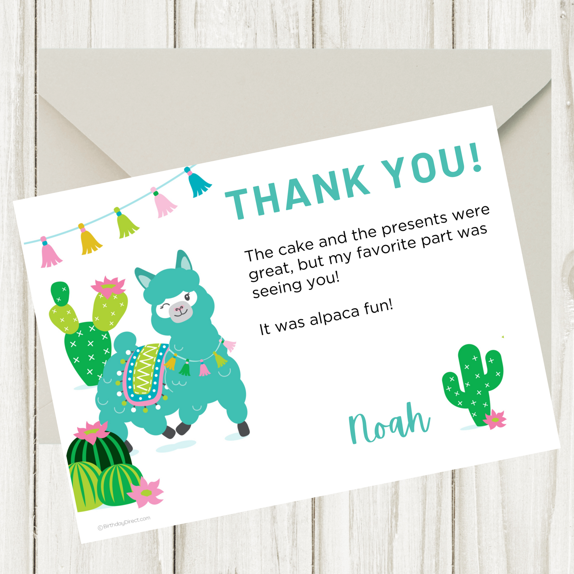 Finish the celebration with a sweet Little Alpaca thank you card. Help your child share gratitude with an easy-to-edit, print-at-home design that matches your theme.