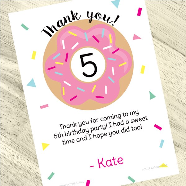 Finish the celebration with a sweet Little Donut thank you card. Help your child share gratitude with an easy-to-edit, print-at-home design that matches your theme.