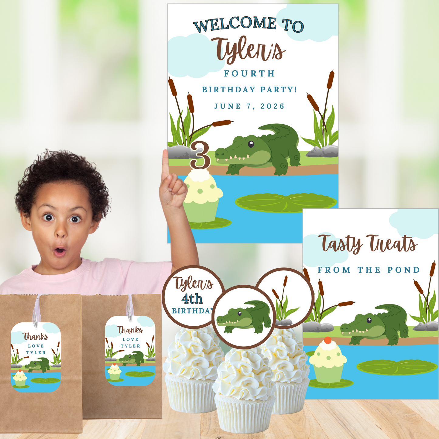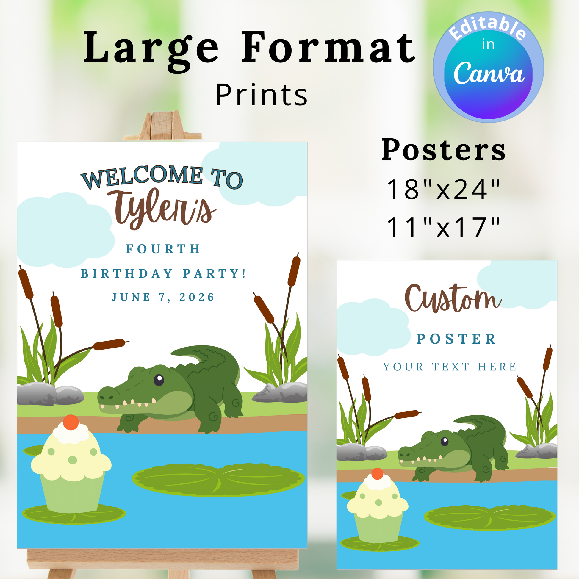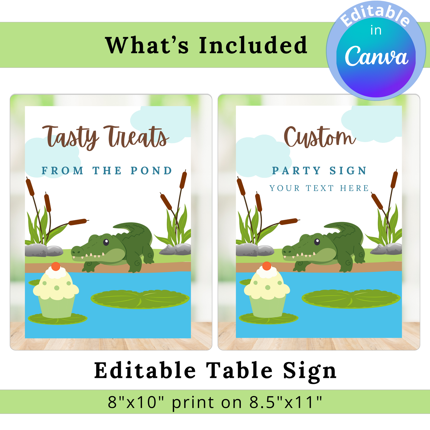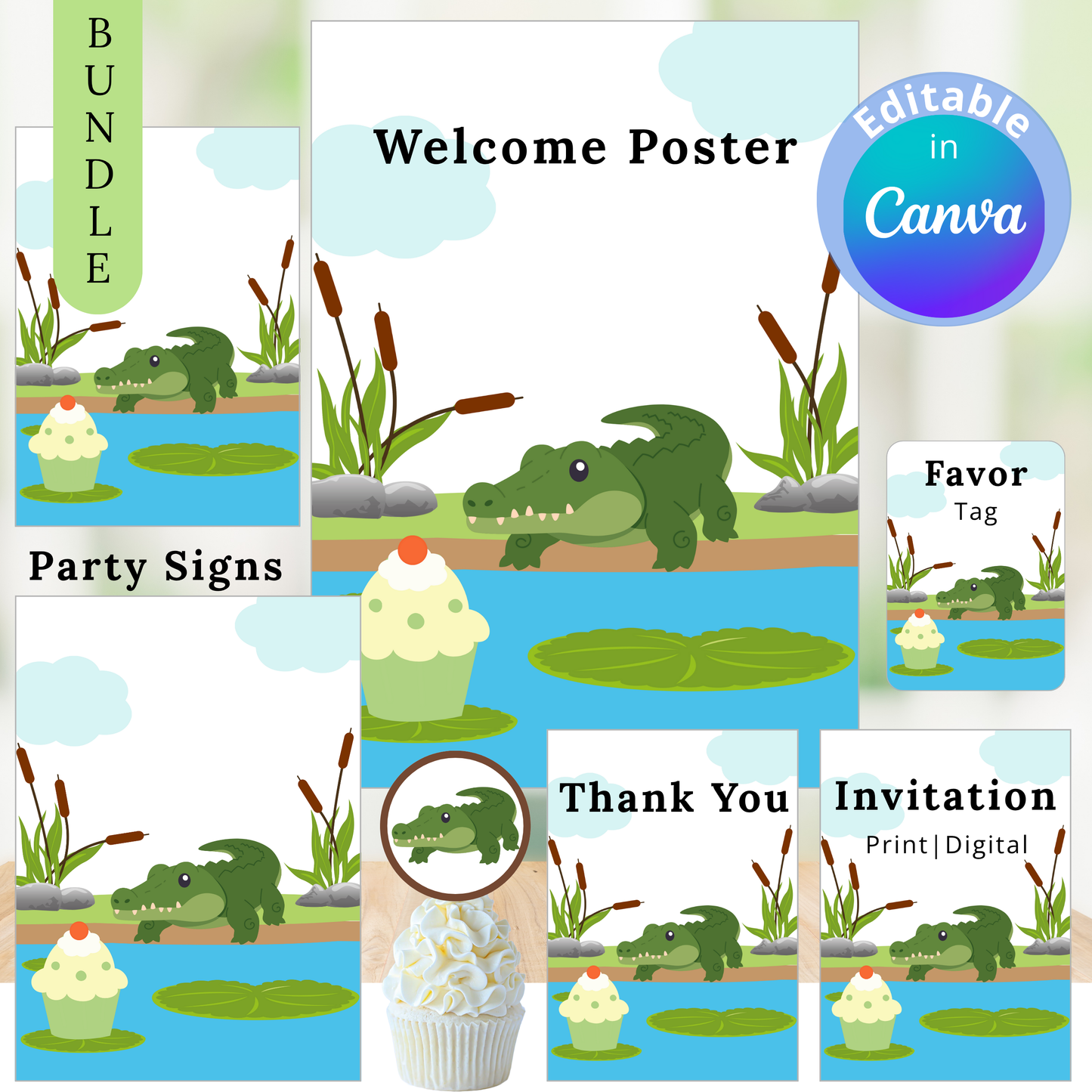 Little Cattail Pond Pals Alligator Editable Party Bundle Canva Template